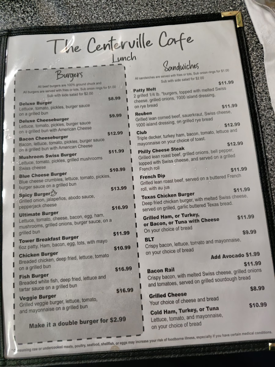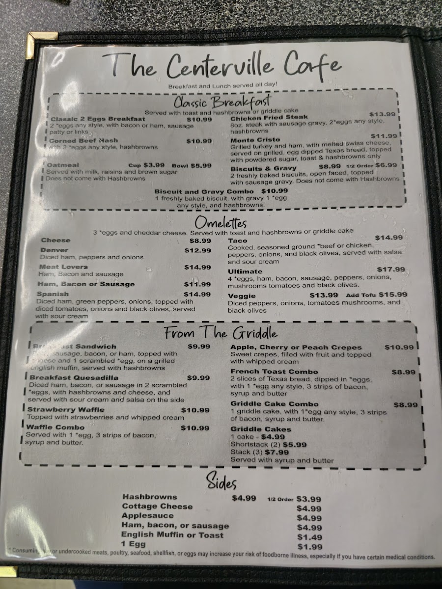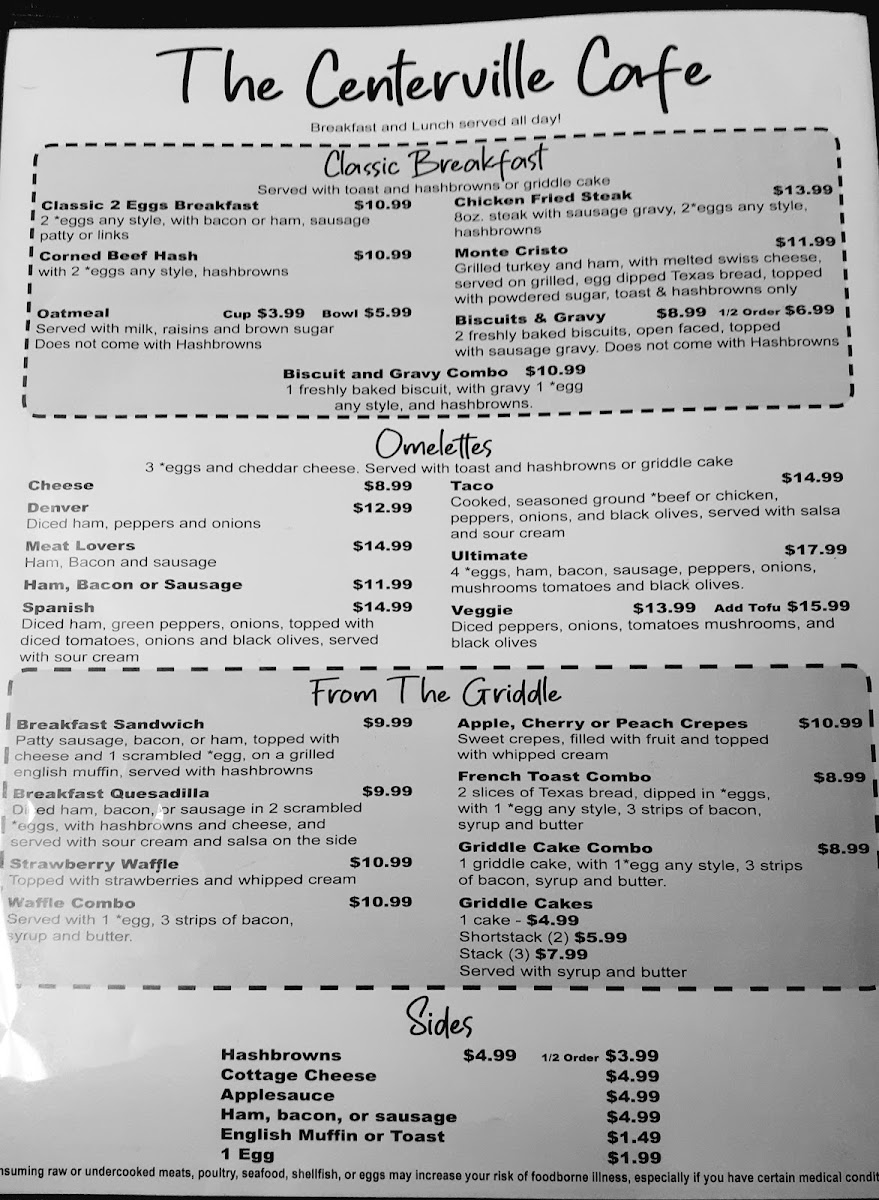 Experience the friendly service and freshly prepared meals that make us a must-visit destination for anyone seeking a hearty, delicious meal. Join us at The Centerville Cafe—your taste buds will thank you!